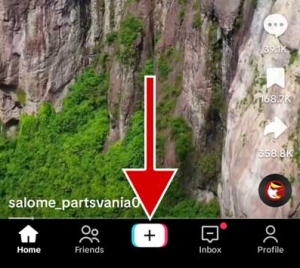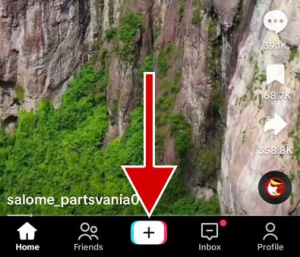 Open TikTok and tap the + button at the bottom.